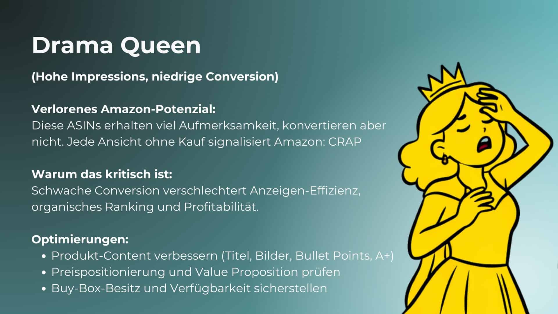 • Hohe Impressions, aber niedrige Verkäufe? Amazon interpretiert das als geringe Relevanz.